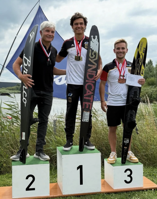 Wir gratulieren Martin zum 2 Platz in der Kategorie Slalom +65 und Alfons zum 2. Platz Kategorie in der Kategorie Slalom +45 bei der Deutschen Meisterschaft in Halle. Alfons belegte noch den 4.Platz in der Kategorie Trick +45. Markus belegte den 5 Platz in der Kategorie Slalom +55